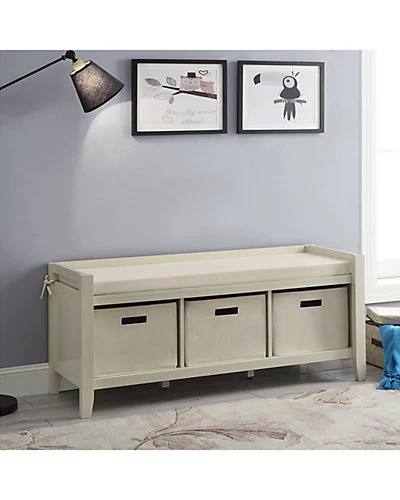 - Design details: Add seating and storage to your entry or mud room with the Luray Entryway Bench. The cream cushioned seat makes sitting comfortable, while the three storage baskets will keep shoes, jackets and more organized. The neutral cream finish will easily complement any existing decor colors.