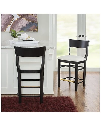 - Sleek and fitted to the nines with subtle embellishments, this Black toned counter stool provides a renewed take on a farmhouse classic. The beechwood frame is reinforced by two support rungs, ensuring long term stability, while the footrest is outfitted with a brass kickback for extra protection. The padded seat is upholstered with white polyester fabric for added comfort and easy cleaning. This counter stool set of two arrives fully assembled and ready to bring new excitement to your kitchen or home bar.