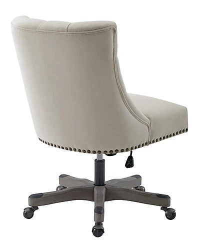 - Design details: The Della Office Chair makes your work space stylish, while keeping you comfortable. The plush chair features a gray wash wood base with metal castors allowing you to easily move around your workspace. The chair is accented with a button tufted back, antique brass nailheads and smooth swooping sides. A gaslift allows the chair to easily adjust to fit a variety of desk and table heights. Perfect for heavy duty wear, the office chair is upholstered in LiveSmart fabric that is not only water repellent but also stain resistant.