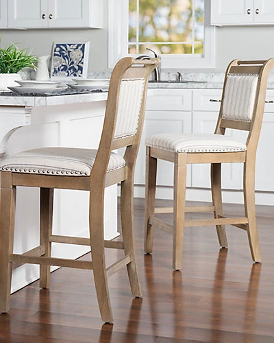 - Design details: French style and farmhouse design combine to create the Emmy Counter Stool. The washed finished wood is perfectly accented by the stripe ticking fabric and brushed silver nailheads. Footrails provide stability and durability. Counter Height.