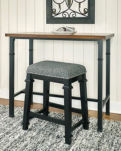 - Design details: Add traditional seating to your counter or high top table with the Kennedy Backless Stool. Crafted from the wood, the stool features splayed legs accented by decorative wood trim. Finished in a dark black, the seat is upholstered in a black and white tweed fabric and embellished with shiny silver nailheads. Counter Height.