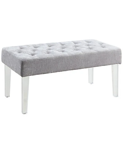 - Design details: Exuding modern design and appeal, the Ella Acrylic Leg Bench is perfect for adding eyecatching style to any space. The clear acrylic legs offer a dramatic look to the simple shape. The plush seat is upholstered in a platinum polyester fabric and features simple tufted details. Perfect for placing in a bedroom, dressing area or living space. 18″ Seat Height