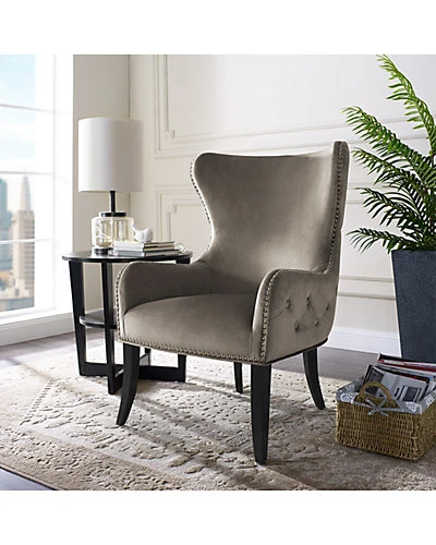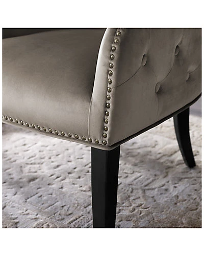 - Design details: The Salem Round Back Chair is a great accent piece for your home office, bedroom or living room. This chair is detailed in antique bronze nailheads, along with a tufted backing. The beige upholstery is bold and will add a pop of color to any room. The high back and rounded armrest provide for supportive and comfortable seating.