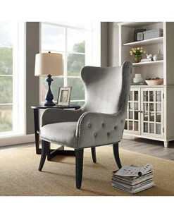 - Design details: The Salem Round Back Chair is a great accent piece for your home office, bedroom or living room. This chair is detailed in brushed silver nailheads, along with a tufted backing. The dark gray upholstery is bold and will add a pop of color to any room. The high back and rounded armrest provide for supportive and comfortable seating.
