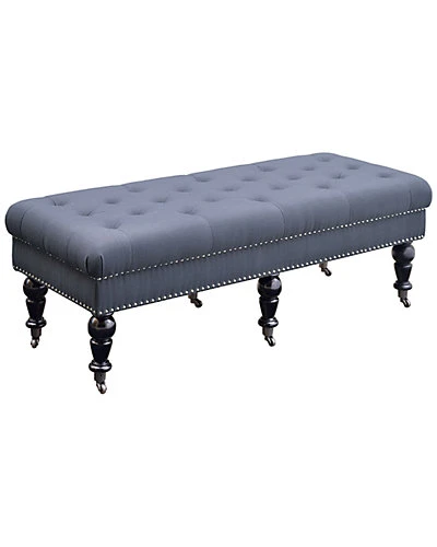 - Design details: Evoking elegance, the Tess Bench is has a timeless design that will easily complement traditional and transitional homes. Upholstered in a Charcoal Linen fabric, the bench is accented with designer details such as silver nail heads and black finished legs. The plush top makes sitting comfortable. A classic addition to the end of the bed, entry, hall or under a large window. 50″ long