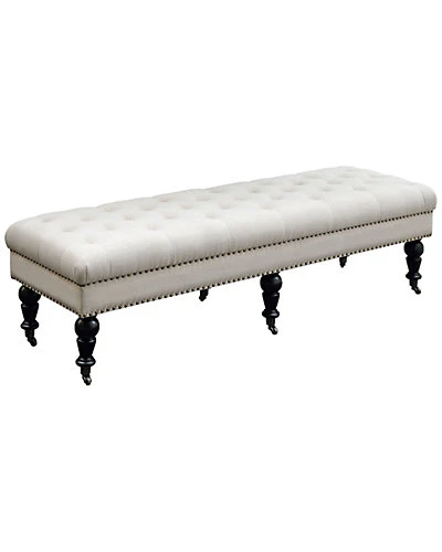 - Design details: Evoking elegance, the Isabelle Bench is has a timeless design that will easily complement traditional and transitional homes. Upholstered in a Natural Linen fabric, the bench is accented with designer details such as burnished bronze nailheads and dark espresso finished legs. The plush top makes sitting comfortable. A classic addition to the end of the bed, entry, hall or under a large window. 62″ long