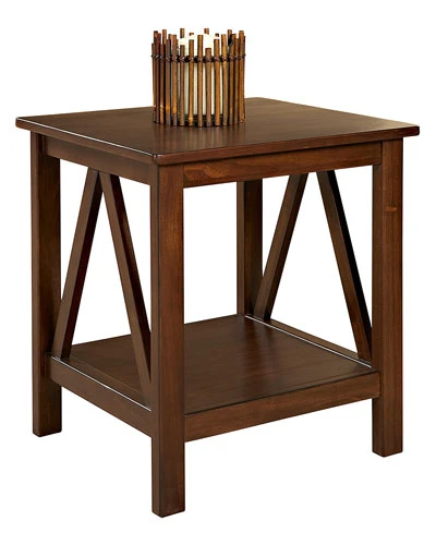 - Made of pine and MDF with an antique tobacco finish